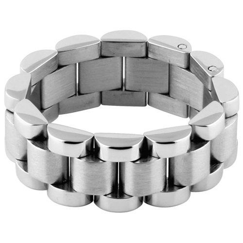 316L Stainless Steel Ring -Watchband Design - Finish: High Polish and Matte- Band and Face Width: 10mm